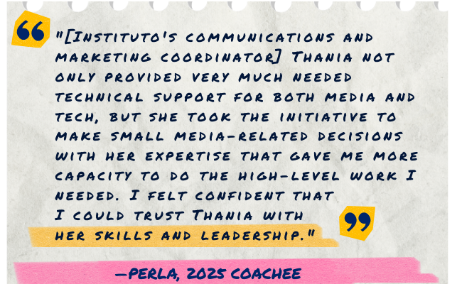 Above all, we want to thank everyone who attended our trainings and events, received coaching or direct support from our Instituto staff, donated, read our bi-weekly newsletter, or cheered us on!