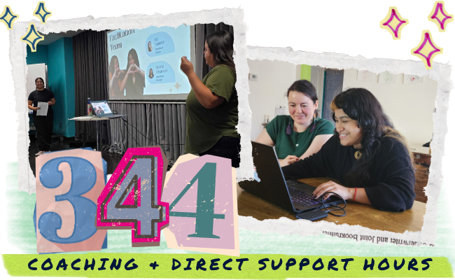 We provided 344 coaching and direct support hours to 65 leaders, covering a range of topics from data to communications. Throughout the year, we tailored one-on-one coaching sessions to leaders' specific needs and areas of growth. Additionally, we step in when extra help is needed. Cihuapactli Collective, a direct support organization based in Phoenix, had limited staff for their biggest event of the year in February; we gladly supported them.