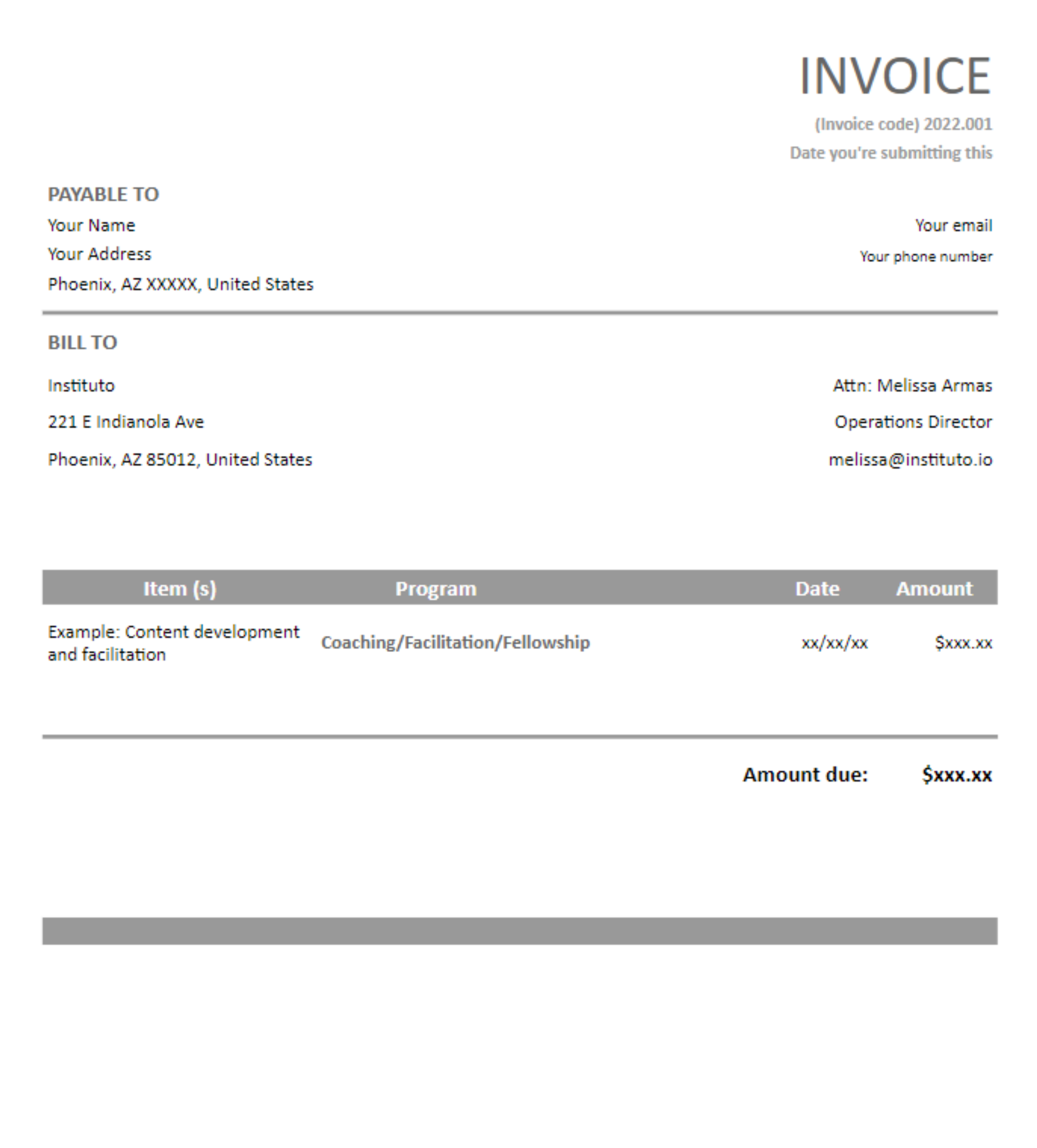When submitting an invoice to Instituto, please UPLOAD IT HERE.